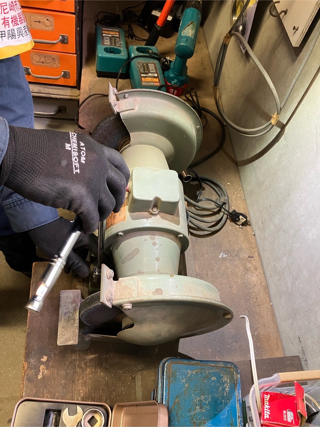 環境省が出しているガイドラインで、工作機械に低濃度PCB含有コンデンサが使用されている可能性があると知り、甲陽興産さんにPCB調査をお願いしました。普段工作の授業で使用しているグラインダーや糸鋸を調べていただきましたが、実際にいくつかPCBが発見されました。低濃度PCBの含有が判明した機器は、新しい機器の購入が完了次第適正に処理したいと思います。